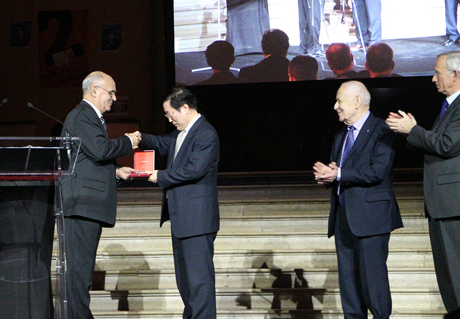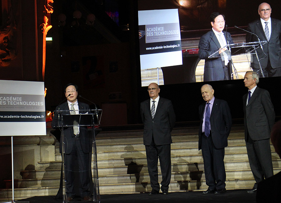 ? ? ? ? 2015年3月9日晚,韓忠朝教授在法國(guó)巴黎參加了法國(guó)國(guó)家技術(shù)科學(xué)院院士授予儀式。法國(guó)國(guó)家技術(shù)科學(xué)院院長(zhǎng)阿蘭-布加(Alain BUGAT)在儀式上向包括韓忠朝教授在內(nèi)的2014年14名新增院士頒發(fā)了院士徽章,隨后每位新增院士進(jìn)行了三分鐘的演講。中國(guó)駐法使館公使銜參贊參加了該儀式,并向獲得院士稱號(hào)的韓忠朝教授進(jìn)行了祝賀。值得一提的是,韓忠朝教授也是第一位當(dāng)選該科學(xué)院院士的中國(guó)學(xué)者。